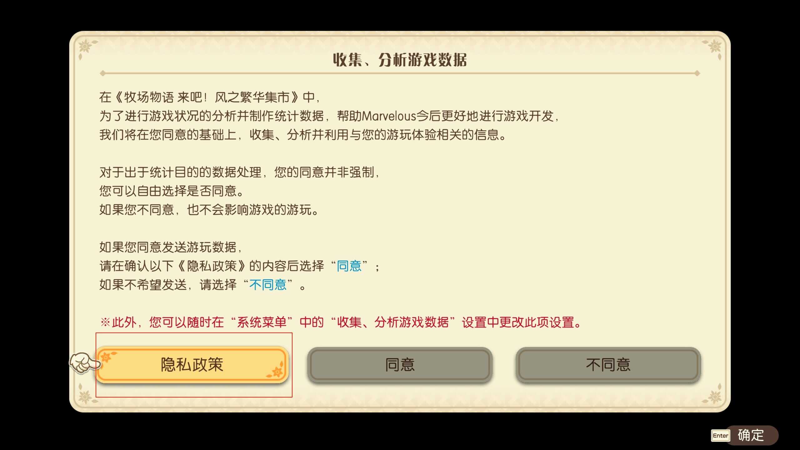 然后第一次进游戏会弹出个隐私协议,点击会弹出一个浏览窗口,无视,关掉继续回游戏点同意即可,只有首次运行游戏会弹出。